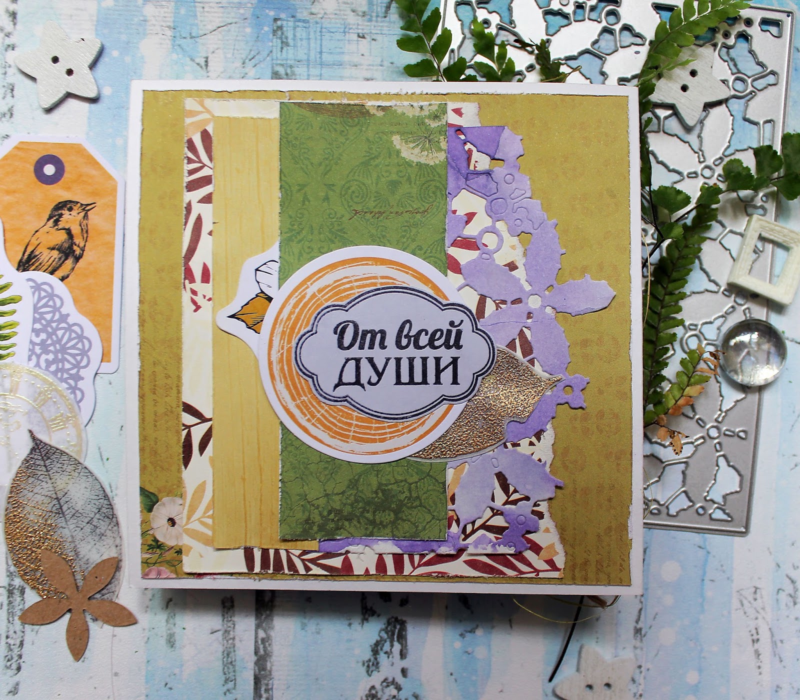 Открытка у меня получилась лесная благодаря новому приобретению ножику от fantasy "Срез деревяшки". Делала ее из бумаги Forest от Скрапберриз, которую дополнила высечками от Ecopaper Ну а поскольку орхидея все же растение тропическое - южный колорит добавляет кружевная вырубка на заднем плане того же производителя.(Да, я разорилась на новые ножики и теперь чахну над ними как Кощей над златом.) Золотые листики (эмбоссинг на кальке) добавляют праздничности, а  Жемчужные нити и тычинки для цветов 2  и поздравительная надпись С днем рождения 2 от  Fantasy завершают картину.
